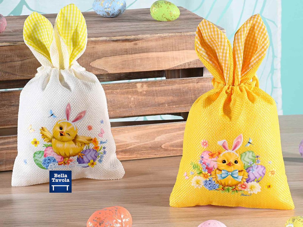 Veľkonočné bavlnené vrecúško na sladkosti s uškami a šnúrkou