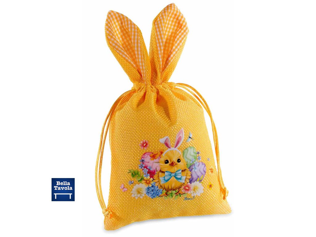 Bavlnené veľkonočné vrecúško s uškami 13 x 16 cm žltá
