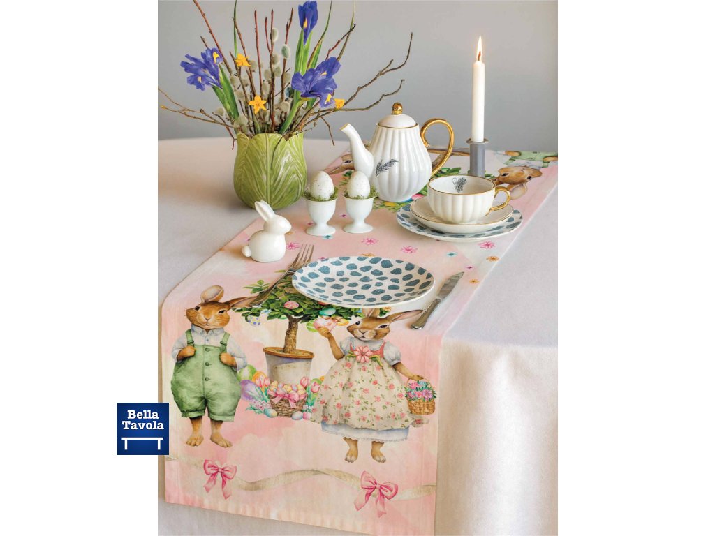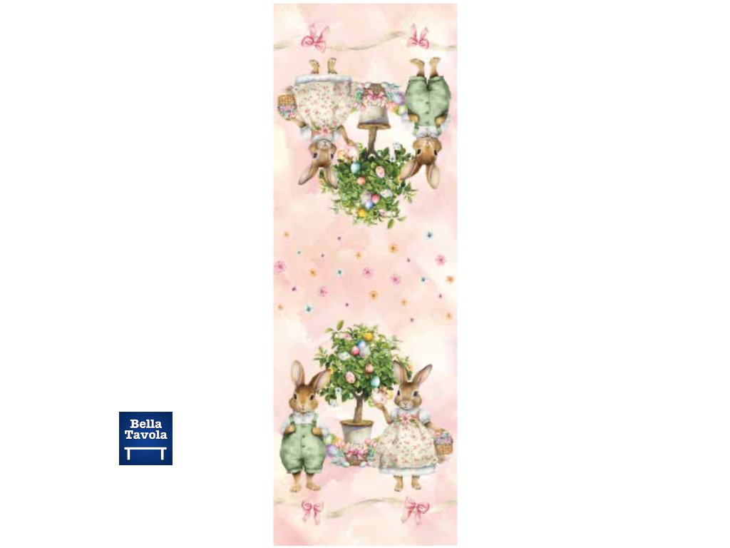 Veľkonočný behúň na stôl s motívom zajačikov z kolekcie Albero Delle Uova od značky Maestri Cotonieri