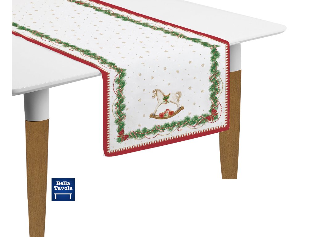 Vianočný bavlnený behúň s motívom Hojdací koník z kolekcie Magie de Noel od značky Easy Life.