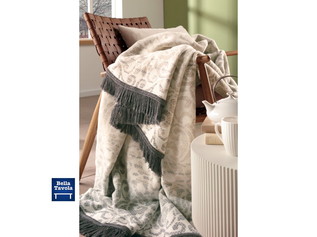 Elegantná deka so strapcami „Arabesk“ poskytuje moderný komfort v prírodných tónoch. Očarí nielen nádherným ornamentálnym vzorom, ale aj krásne mäkkým, nadýchaným povrchom. Táto plyšová deka na pohovku vyrobená z 58 % vysokokvalitnej bavlny a 35 % polyakrylu ju robí naozaj útulnou. Bavlnená zmes s jednoduchou údržbou dobre hreje a pôsobí príjemne.
