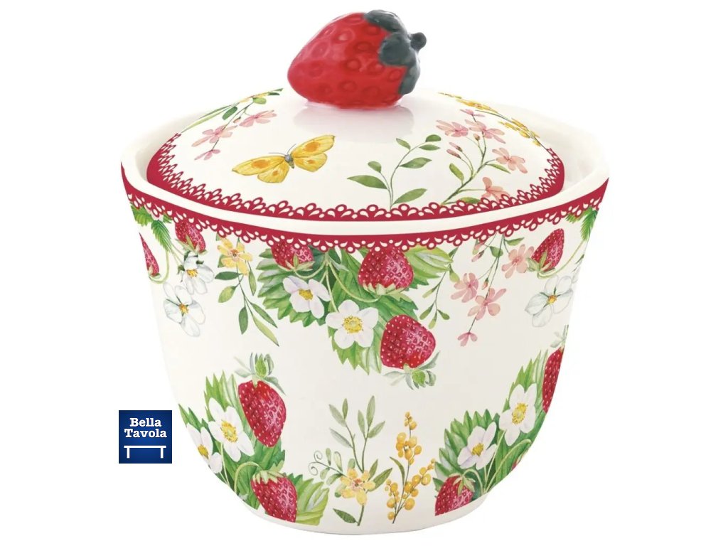 Porcelánová cukornička s detailom jahôdky z kolekcie Jardin des Fraises od talianskej značky Easy Life