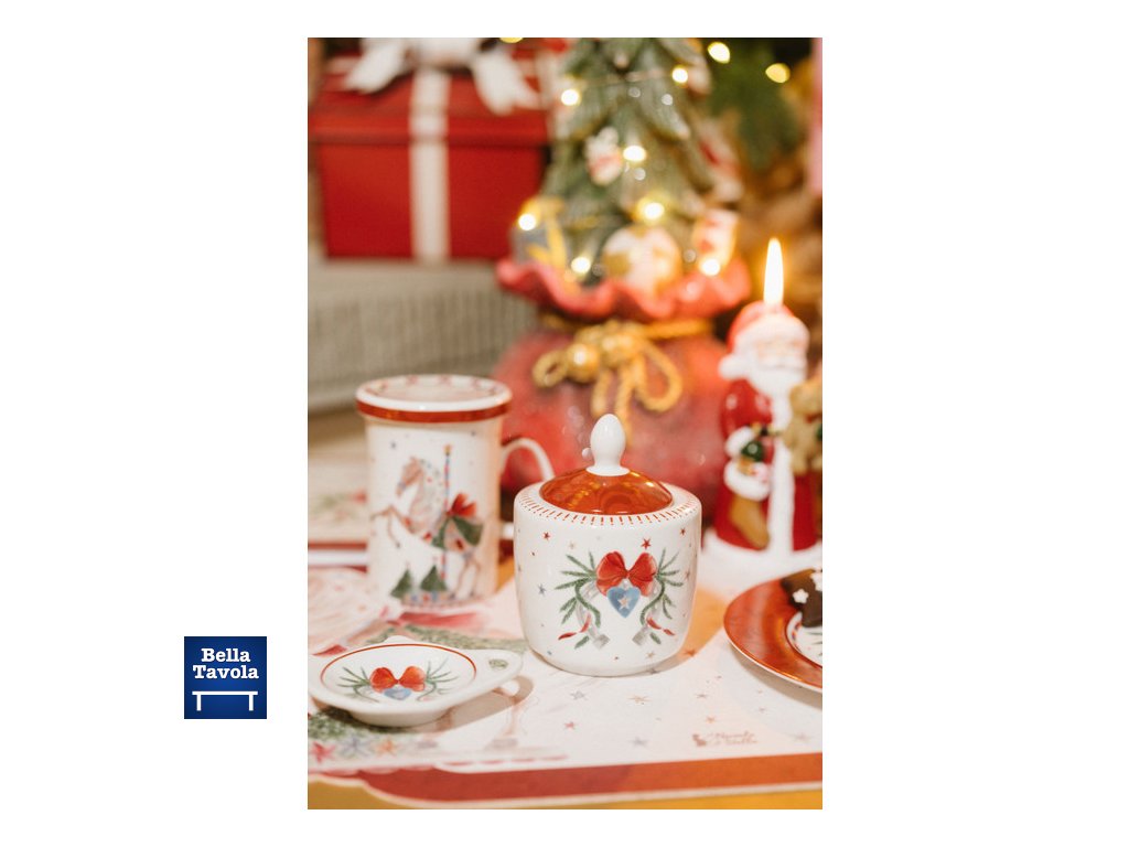 Cukornička 350 ml Amelie - Nuvole di Stoffa. Cukornička z porcelánu s vianočnými motívmi. Jasne červené veko s bielym úchytom, krásnou červenou mašľou a modrým motívom srdca. Doplnená elegantnou darčekovou krabičkou.