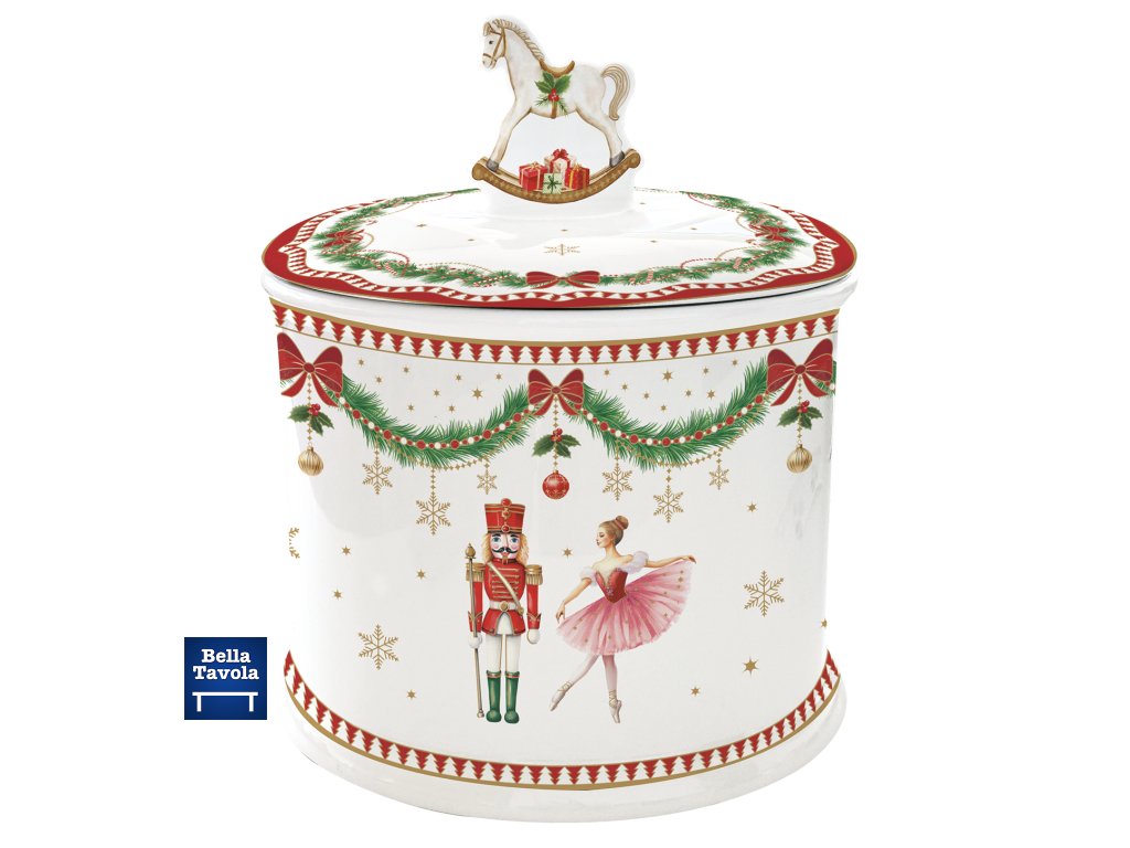 Vianočná porcelánová dóza Baletka a Luskáčik z kolekcie Magie de Noel od talianskej značky Easy Life. V darčekovej krabičke.