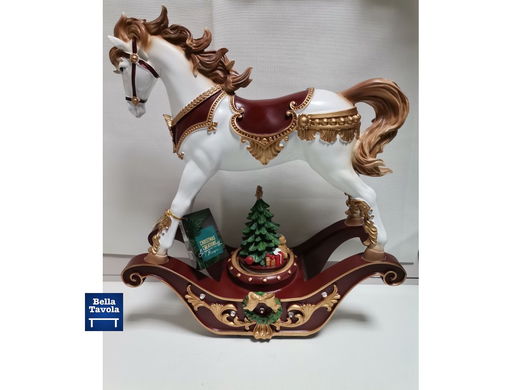 Hojdajúci koník s LED svetlami a točiacim sa stromčekom. Neobsahuje batérie.