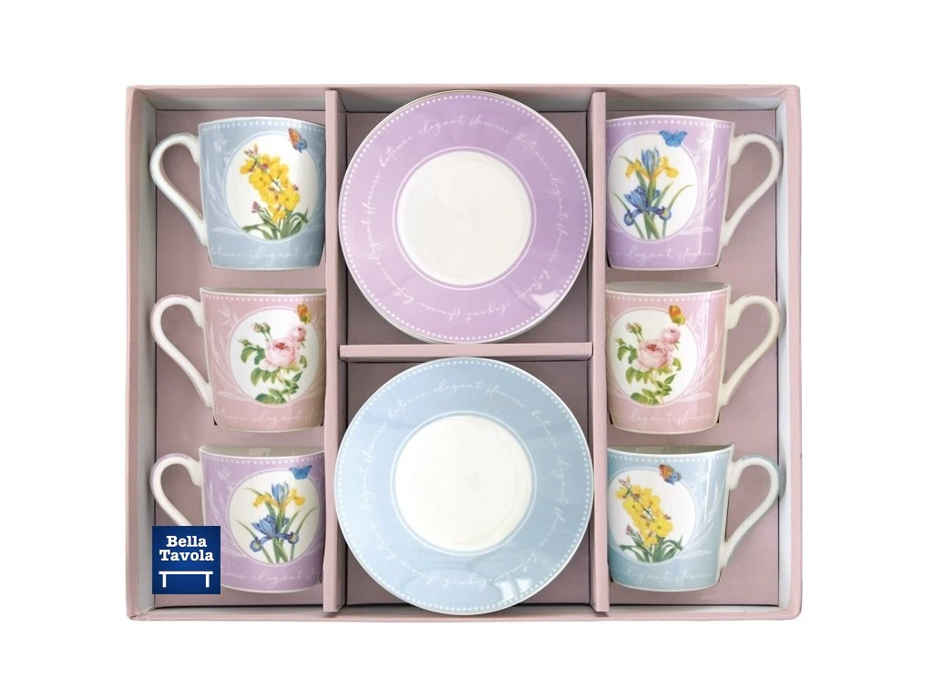 Porcelánové espresso šálky ,sada 6 ks, s podšálkami z kolekcie Royal Blossom od značky Easy Life. V darčekovej krabičke.