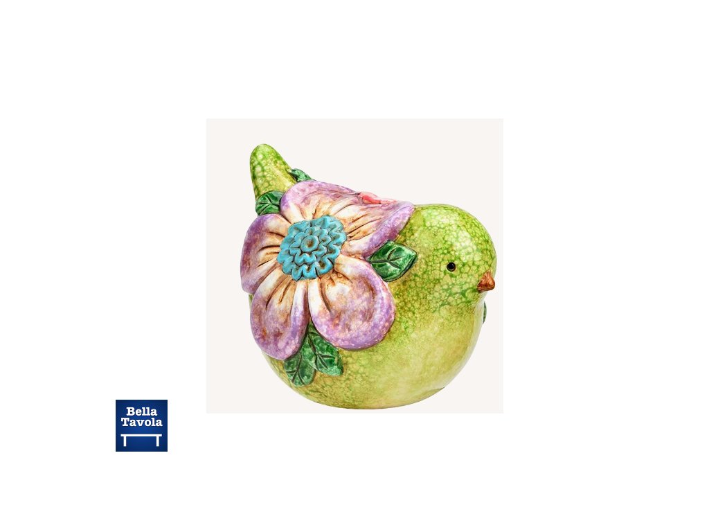 Keramický vtáčik s ružovým kvetom 10x10x9cm - G.Wurm