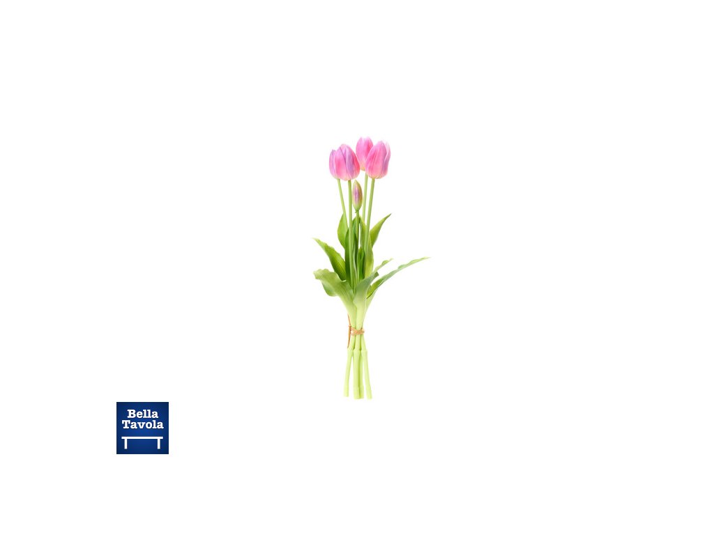 Nádherné umelé tulipány "real touch," v odtieni lila, zväzok 5 ks od značky Nuvole di Stoffa. Vyzerajú ako živé