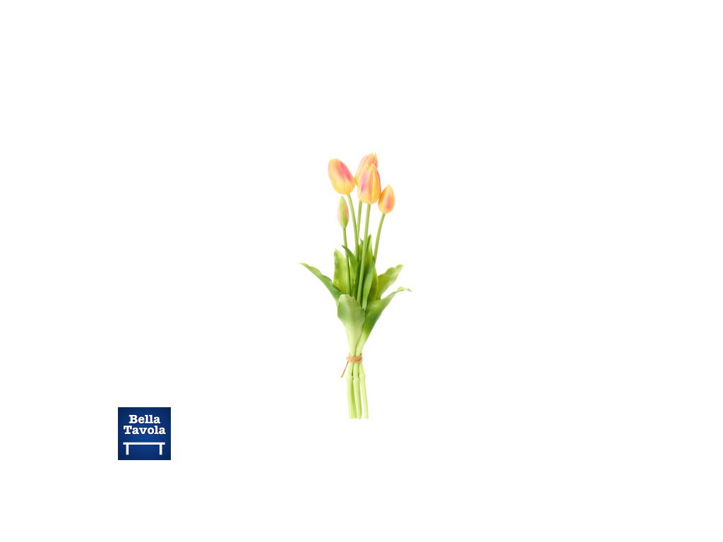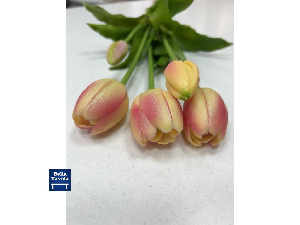 Nádherné umelé tulipány "real touch," zväzok 5 ks v odtieni žltá/fuksia od značky Nuvole di Stoffa. Vyzerajú ako živé