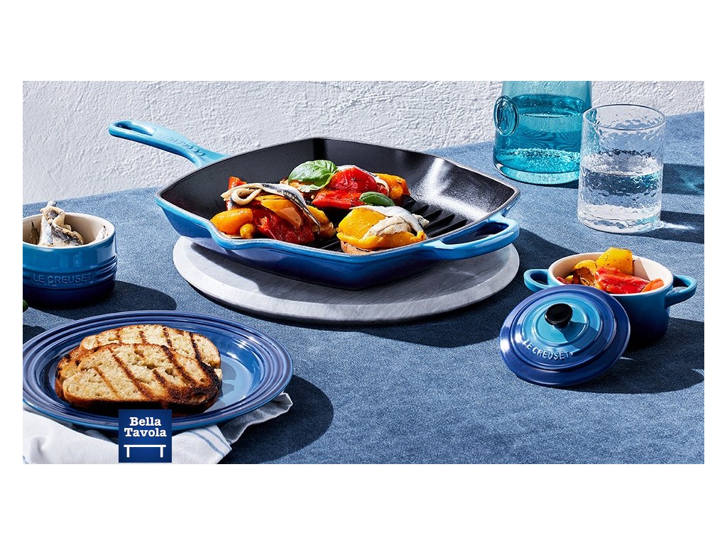 Le Creuset - grilovacia panvica štvorcová 26 cm azurová