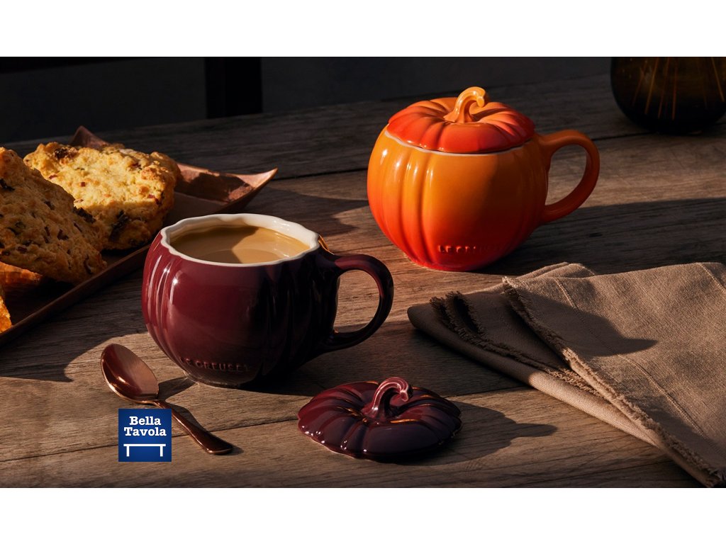 Kameninový hrnček Tekvica s nádherným rozprávkovým dizajnom je očarujúcim sezónnym doplnkom kuchyne a stola. Tento originálny hrnček je ideálny na štýlové vychutnanie vašich obľúbených horúcich nápojov! Je ideálny na uchovávanie kávy, čaju, horúcej čokolády a dokonca aj jednotlivých porcií polievky alebo dezertu, teplých alebo studených. Má pôvabné kameninové viečko s otočným gombíkom, ktoré udrží vaše nápoje dlhšie na správnej teplote a zabráni rozliatiu. Vyrobený z najkvalitnejšej vysoko pálenej kameniny, je povrchovo upravený naším inovatívnym viacvrstvovým glazúrovacím procesom pre hladší povrch, ktorý sa ľahko čistí, je vhodný do umývačky riadu a je odolný voči poškriabaniu, odštiepkom a kovovým stopám.