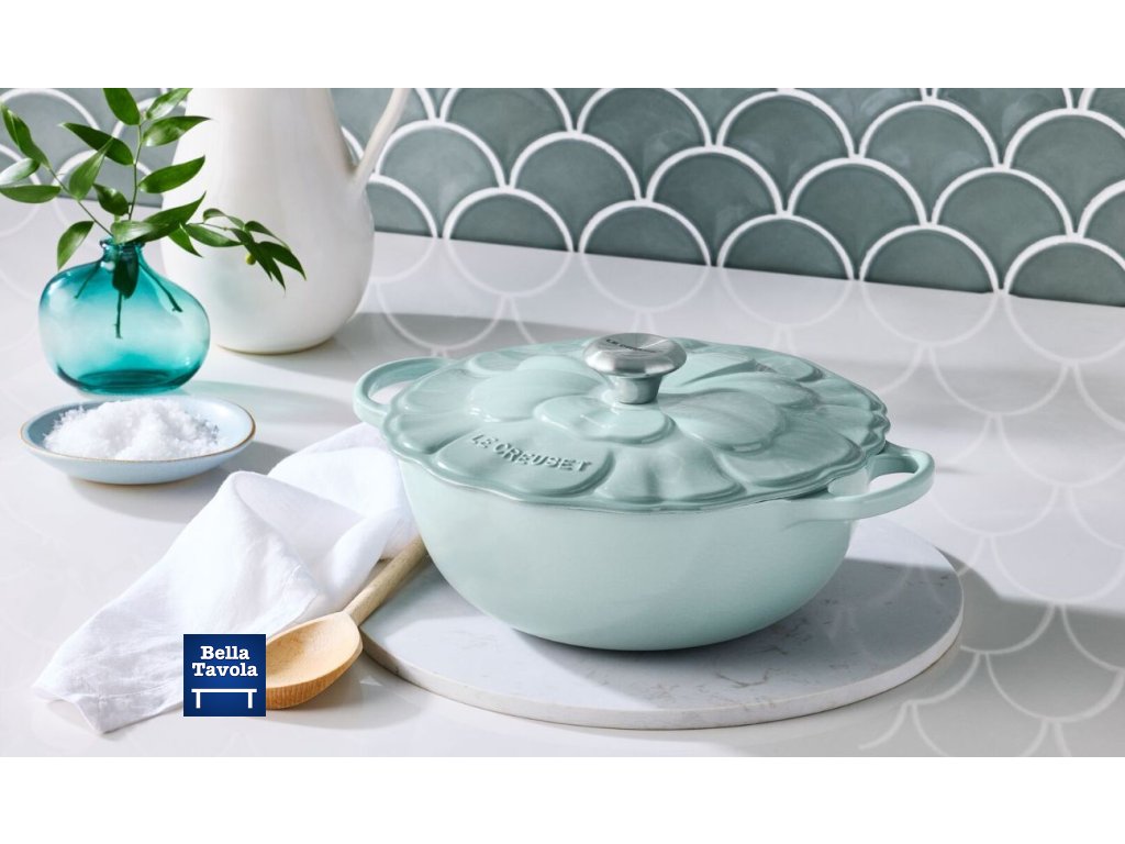 Oslava jarnej radosti a francúzskeho remesla. Tento hrniec na polievku v tvare okvetných lístkov má reliéfne viečko inšpirované kvetom sasanky a je vyrobený zo smaltovanej liatiny pre lepšie udržanie tepla. Vďaka veľkorysej hĺbke a šikmým bokom je ideálny na polievky, cestoviny a dusené pokrmy.