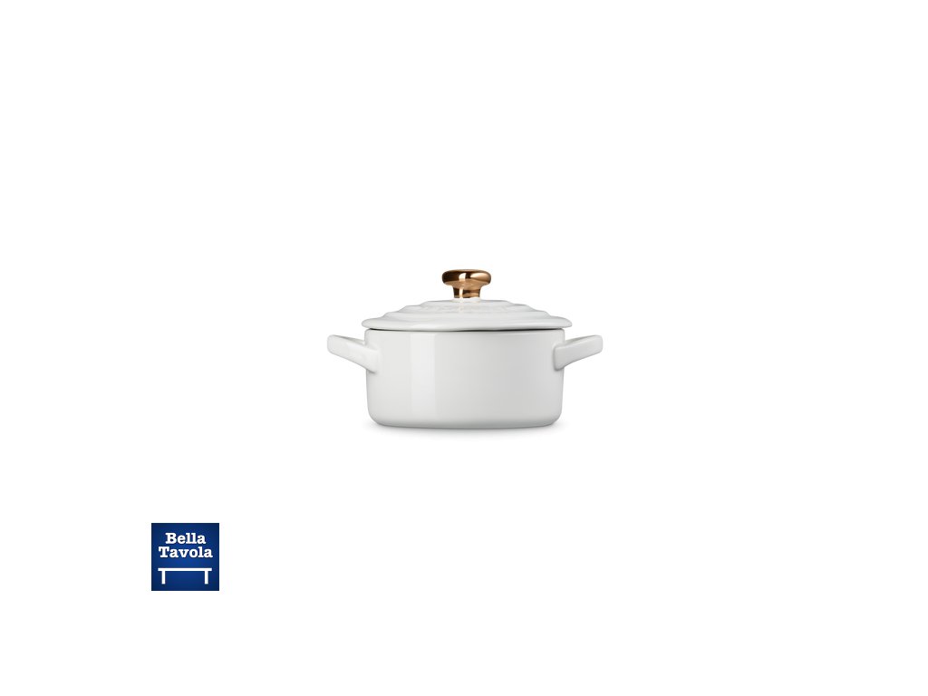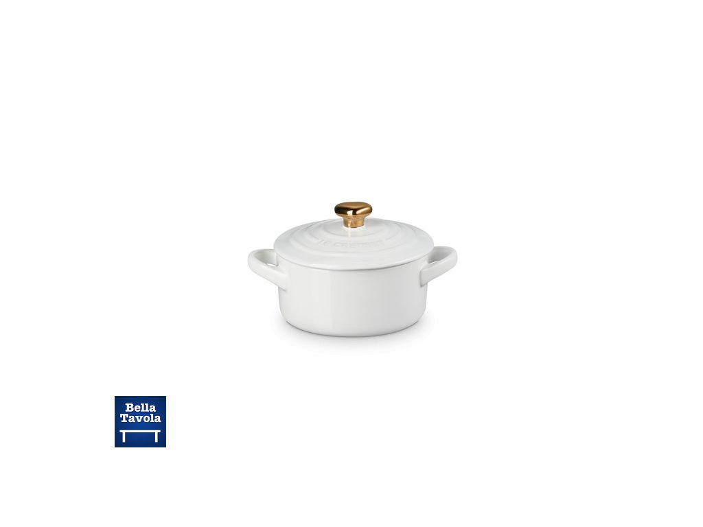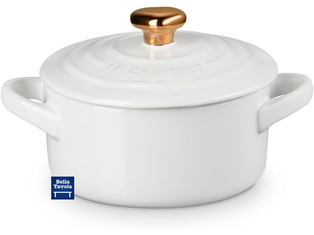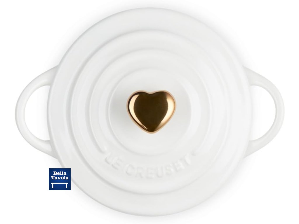 Le Creuset- Mini hrniec so zlatou úchytkou v tvare srdca 250 ml, biely- Heart Collection