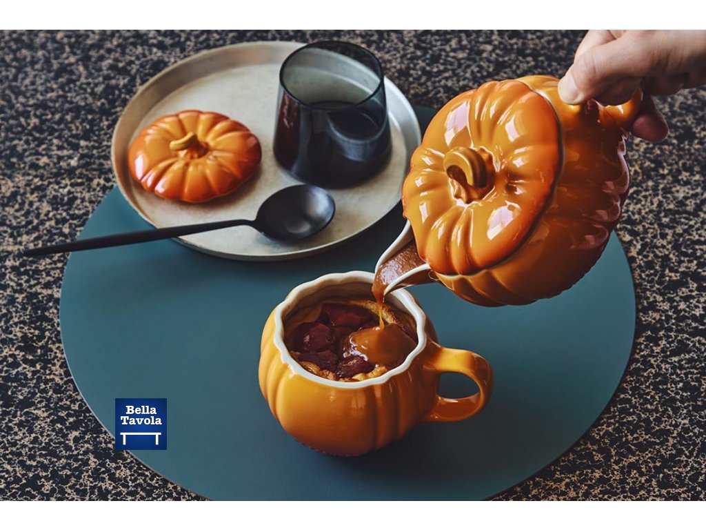 Kameninový omáčnik Tekvica s nádherným rozprávkovým dizajnom je očarujúcim sezónnym doplnkom kuchyne a stola. Tento jedinečný omáčnik v tvare tekvice dodá vášmu jedálenskému stolu šarm a bude témou rozhovoru pri každom jedle. Omáčnik je vyrobený z vysoko kvalitnej kameniny, ponúka pohodlné a bezpečné uchopenie a má špeciálne tvarovaný výlev, ktorý zabraňuje kvapkaniu. Žiarivá glazúra sa ľahko čistí, je vhodná do umývačky riadu a je odolná voči odštiepeniu, škrabancom a škvrnám. Dodáva sa s zodpovedajúcim viečkom v tvare tekvice pre optimálne udržanie tepla, vďaka čomu omáčka zostane teplá počas celého jedla.