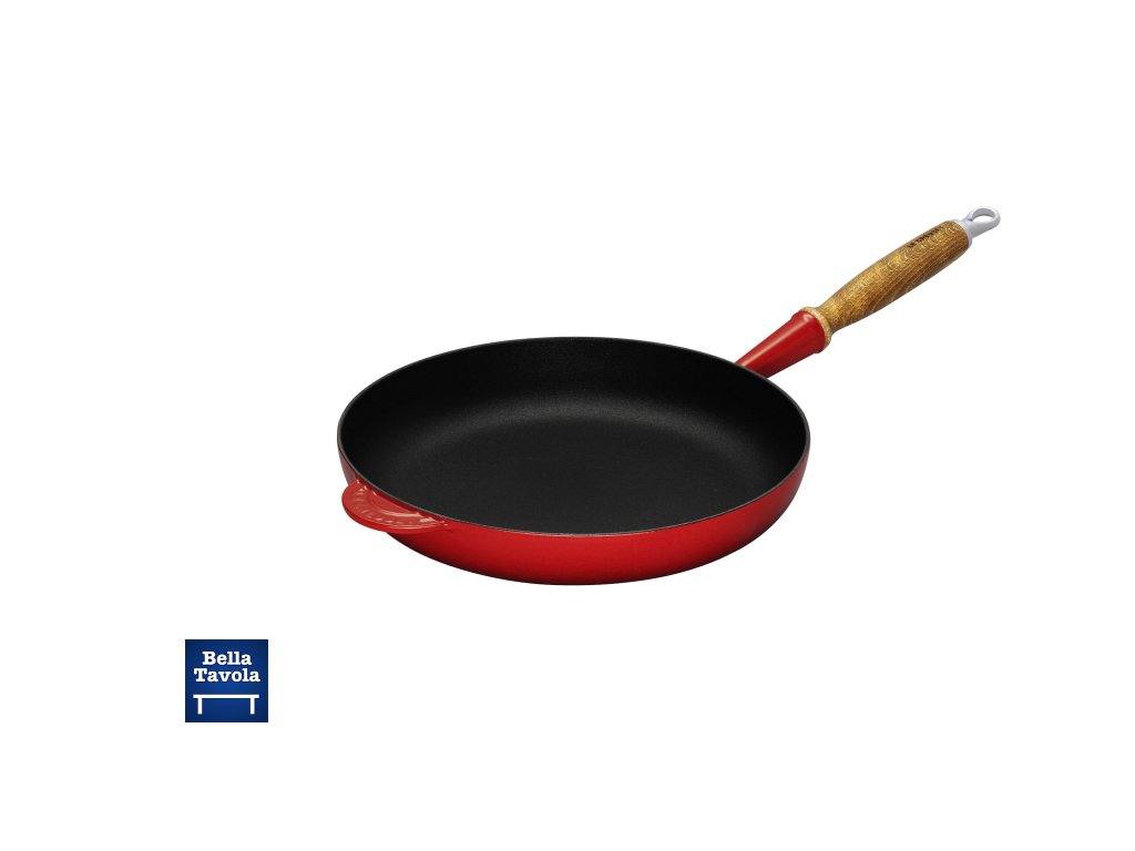 Le Creuset - panvica okrúhla s drevenou rúčkou 28 cm červená