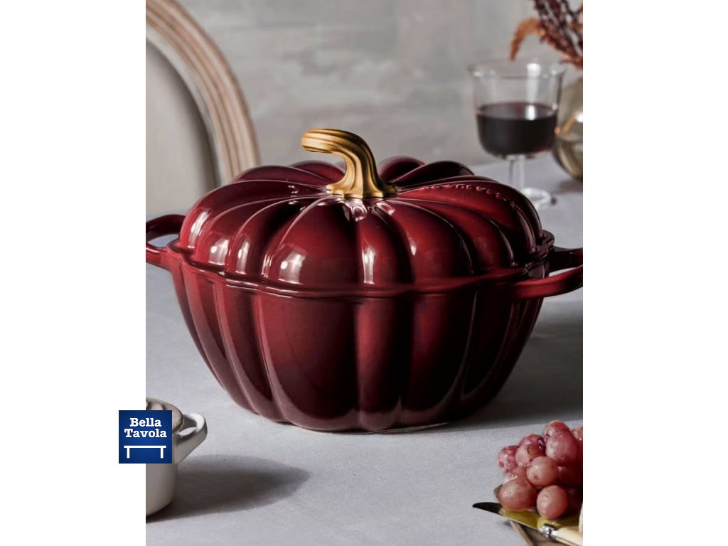 Novonavrhnutý liatinový hrniec Tekvica z kolekcie Signature od Le Creuset svojimi realistickými detailmi bude určite začiatkom konverzácie pri stole. Má veľkorysú kapacitu 3,7 l a autenticky tvarovanú rukoväť pre pohodlné uchopenie. Plochá základňa navyše umožňuje ľahké miešanie, čo je ideálne na varenie duseného mäsa alebo polievok.