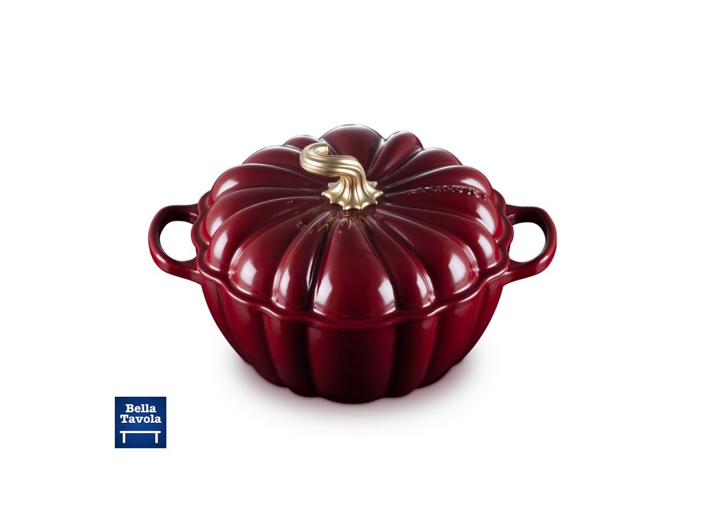 Le Creuset - Liatinový hrniec Tekvica so zlatým úchytom 24 cm garnet