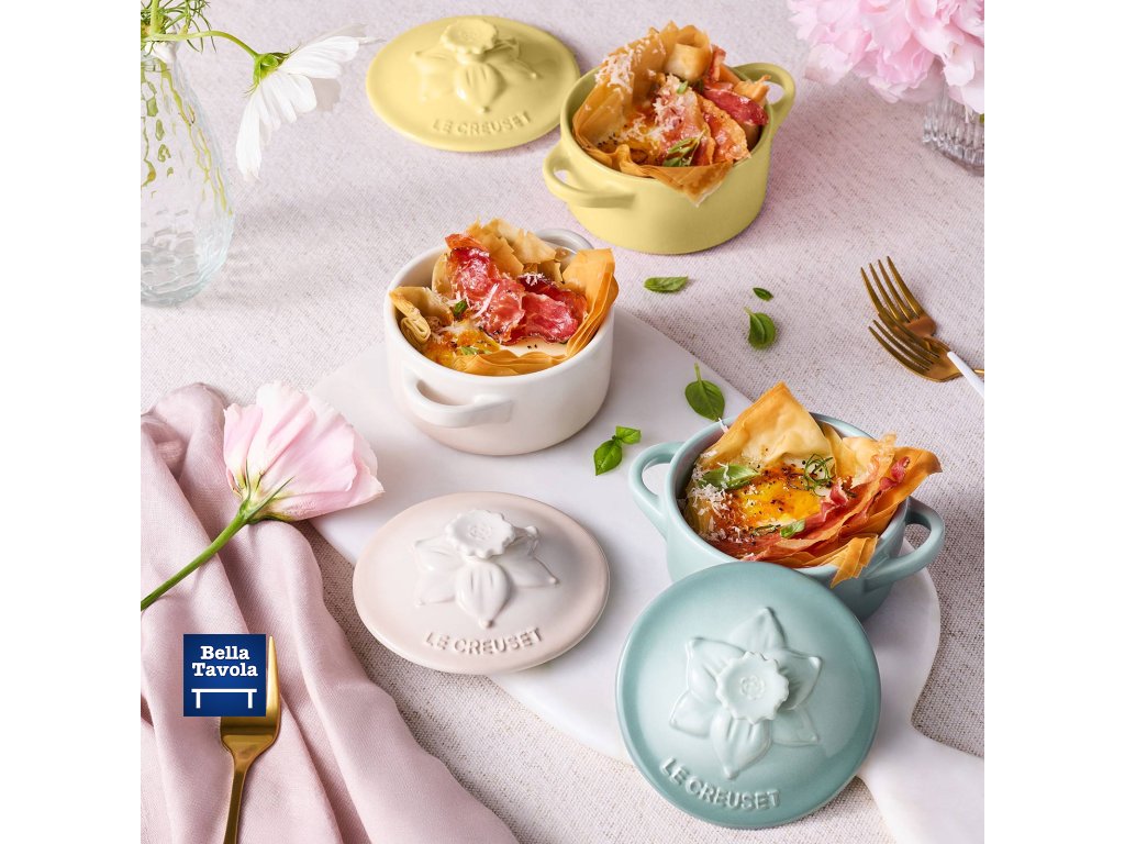 Vneste do svojej kuchyne čaro rozkvitnutej záhrady s mini cocotte z kolekcie Jardin. Mini cocotte je ako stvorená na jednotlivé malé porcie a nemala by chýbať v žiadnej kuchyni. Vrchnák je krásne inšpirovaný narcisom a dodá vašim kulinárskym výtvorom elegantný a hravý nádych. Dostupné vo farbách Sea Salt, Meringue a Shell Pink.