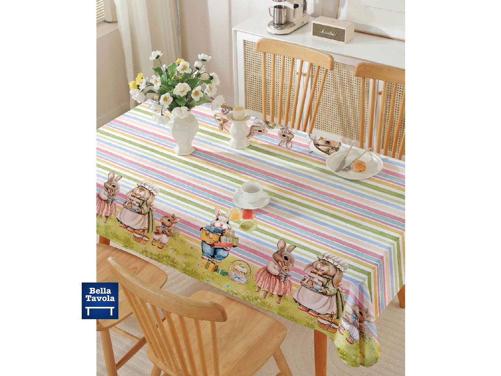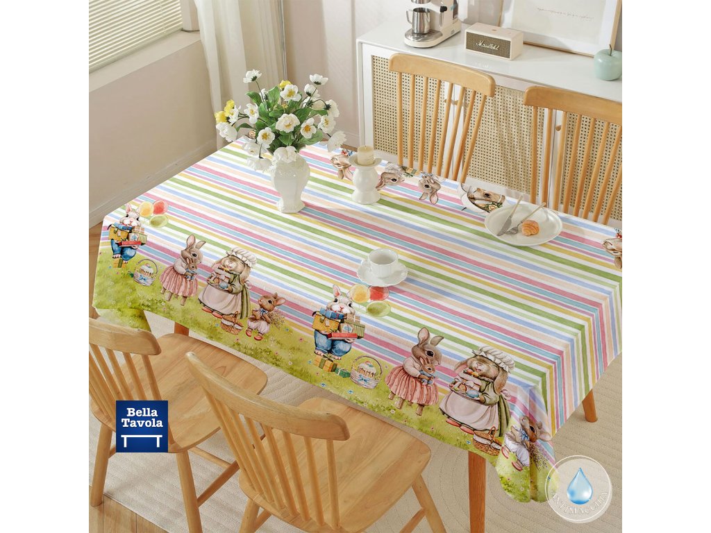 Obrus 140 x 180 cm Zajačiky prúžky, s povrchom proti škvrnám - Maestri Cotonieri