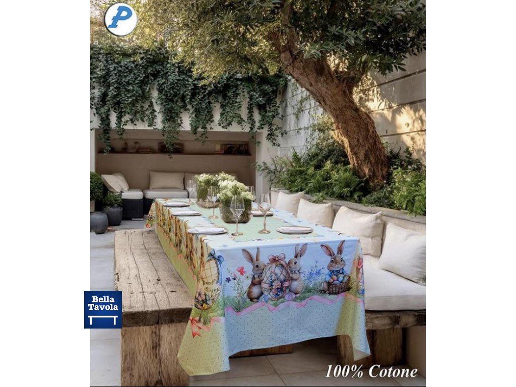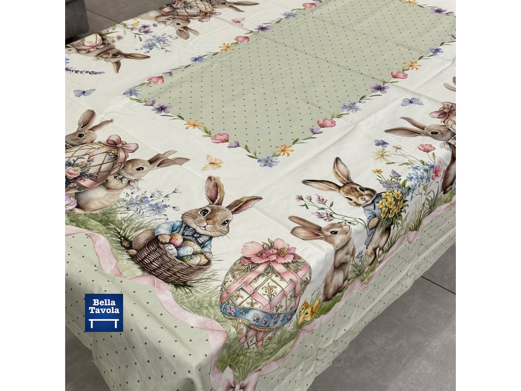 Veľkonočný bavlnený obrus 140 x 245 cm s motívom Zajačik od talianskej značky Pezzoli