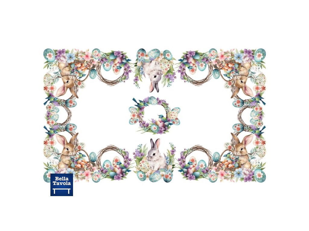 Veľkonočný bavlnený obrus 150 x 180 cm Zajačik s košíkom od talianskej značky Gipetex
