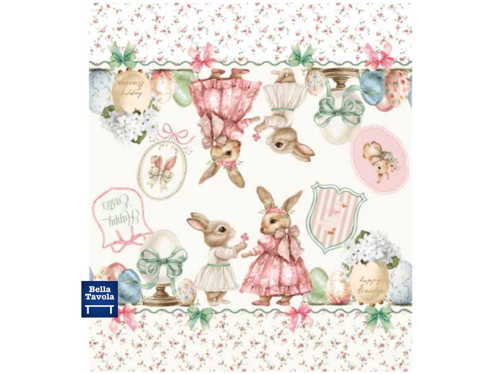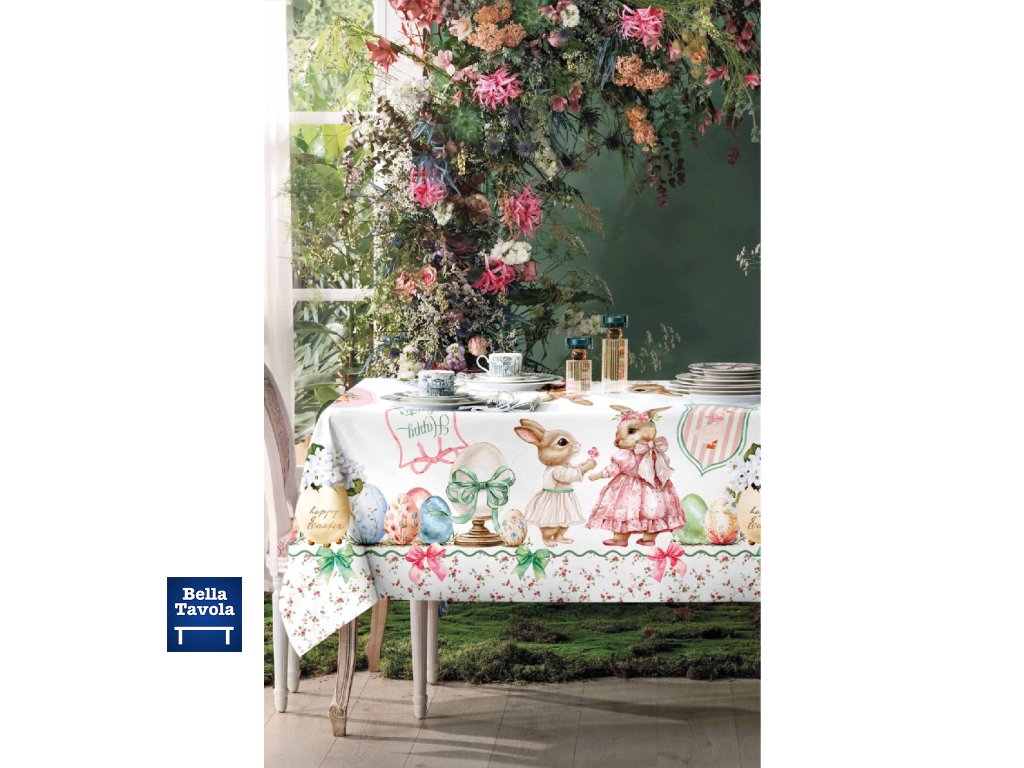 Veľkonočný obrus 144 x 180 cm s motívom zajačikov z kolekcie Amicizia od značky Maestri Cotonieri
