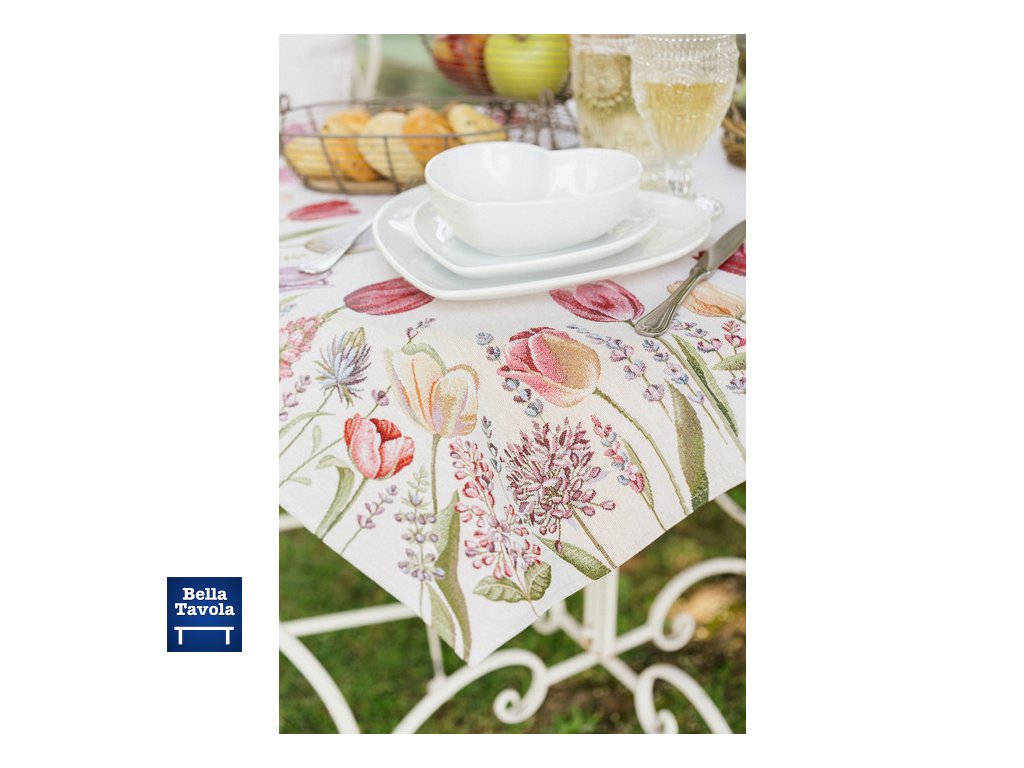 Obrus žakár 100 x 100 cm Tulipány - Nuvole di Stoffa