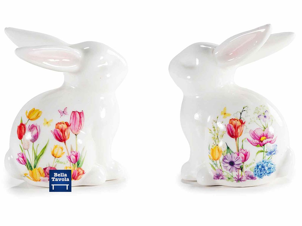 Porcelánové zajačiky s kvetmi set 2 ks - AFI