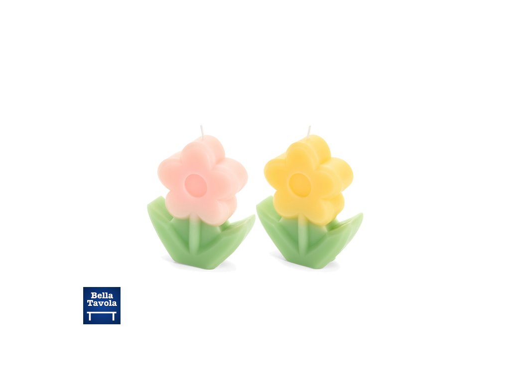 Sada 2 ks sviečok Kvietok ružová/žltá - Nuvole di Stoffa. Veľmi pekné aj do jarných aranžmánov