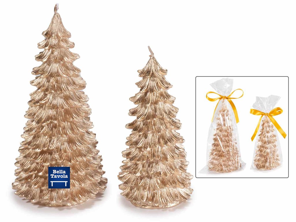 Sada 2 ks sviečok Vianočný stromček zlatá 17,5/13,5 cm
