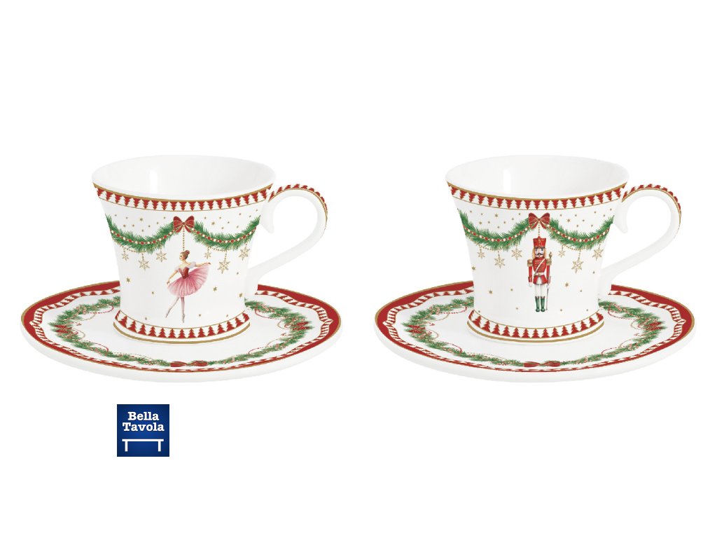 Sada 2 ks vianočných šálok s podšálkami s motívom Baletky a Luskáčika z kolekcie Magie de Noel od značky Easy Life