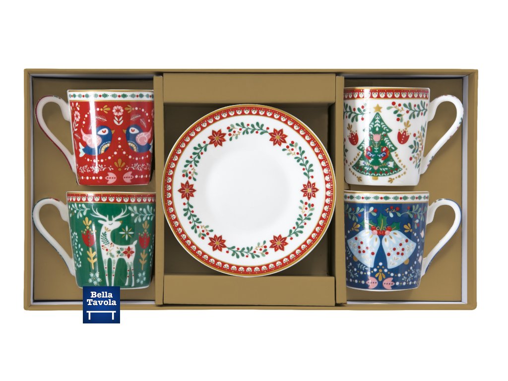 Sada 4 x espresso šálka a podšálka Christmas Folk - Easy Life
