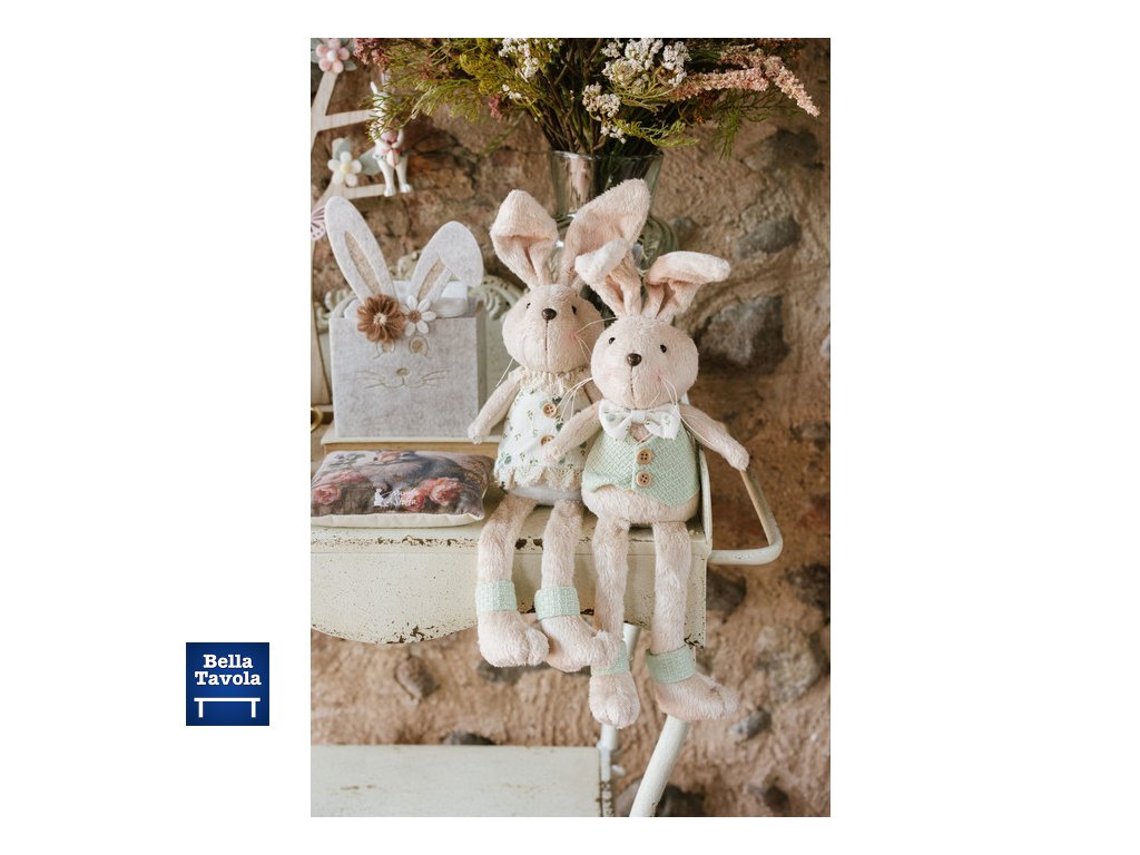 Rozkošný sediaci zajačik a zajačica sú súčasťou novej kolekcie jar/leto 2026 s názvom Pepen od Nuvole di Stoffa a slúžia ako veľkonočná dekorácia na umiestnenie na police alebo do rohu obývačky či spálne ako dekorácia.