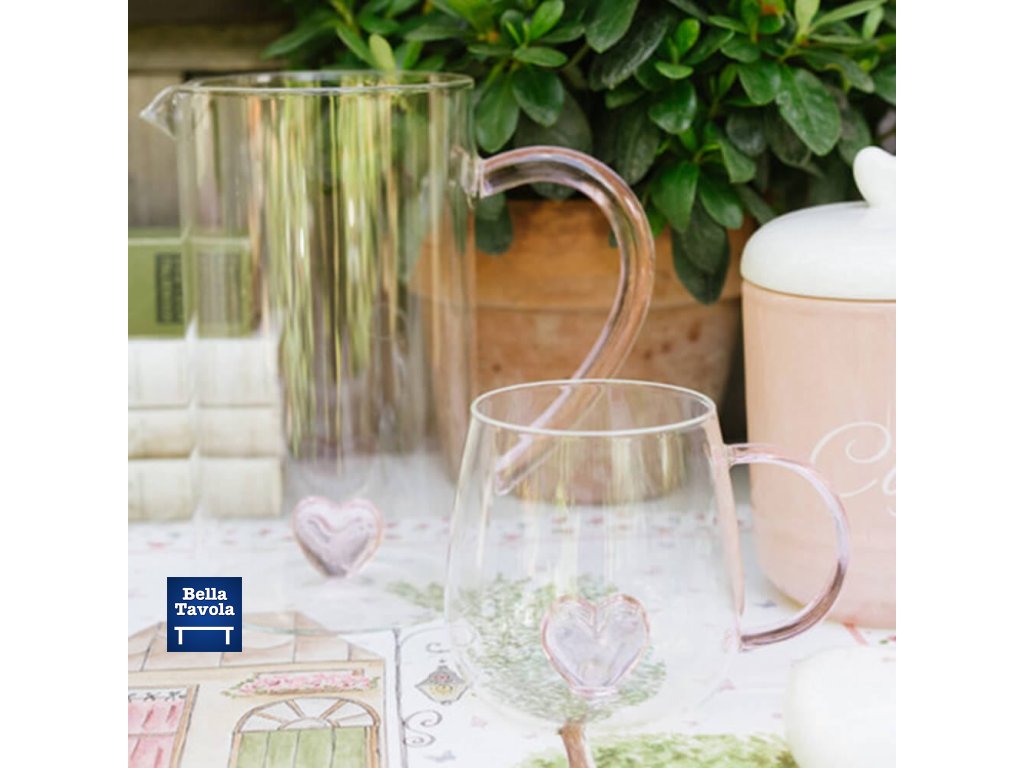 Sklenená šálka s ružovým srdiečkom 0,4l La Vie En Rose - Nuvole di Stoffa