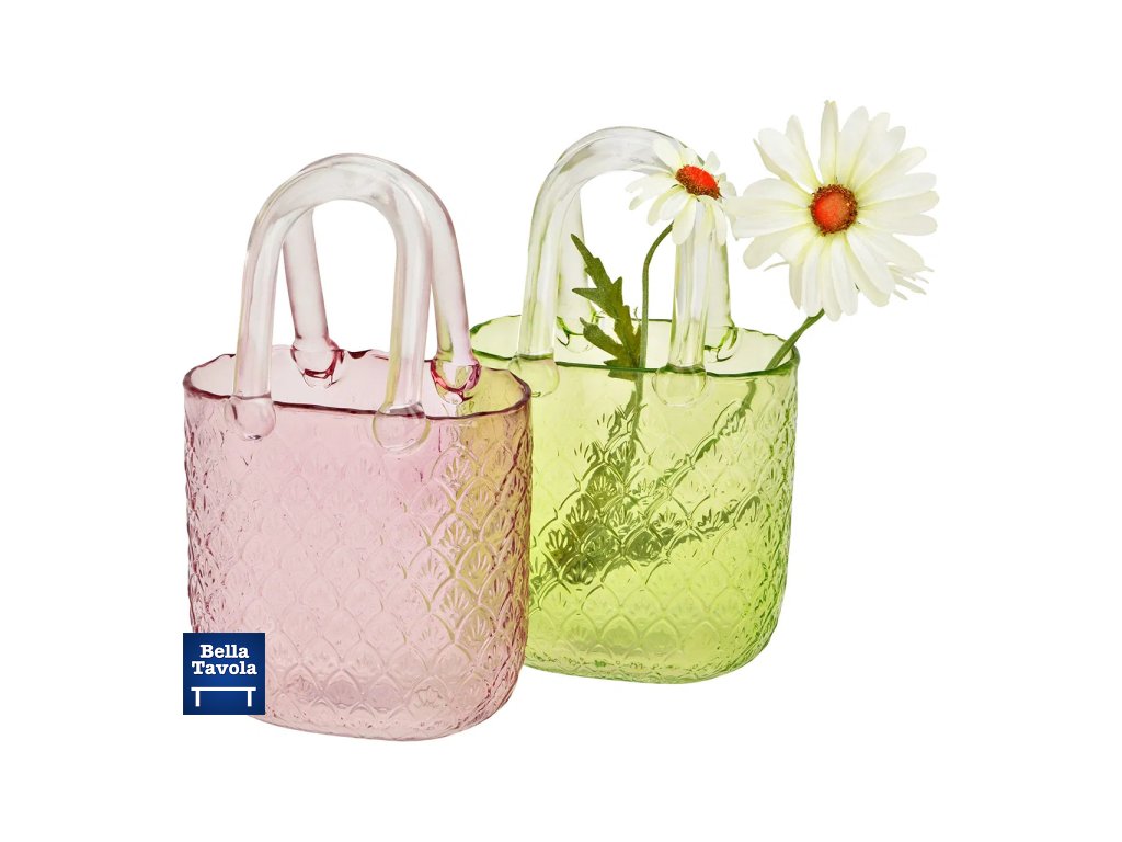 Sklenená váza kabelka 24 cm ružová - Gwurm