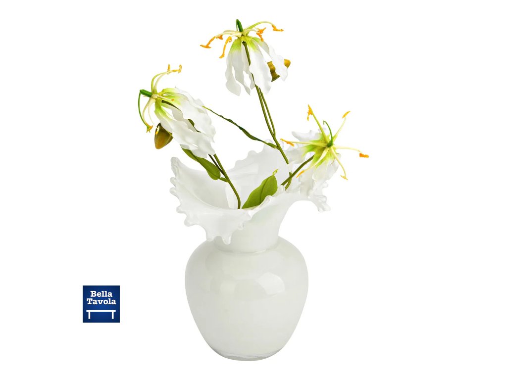 Sklenená váza volán 24 cm biela - Gwurm