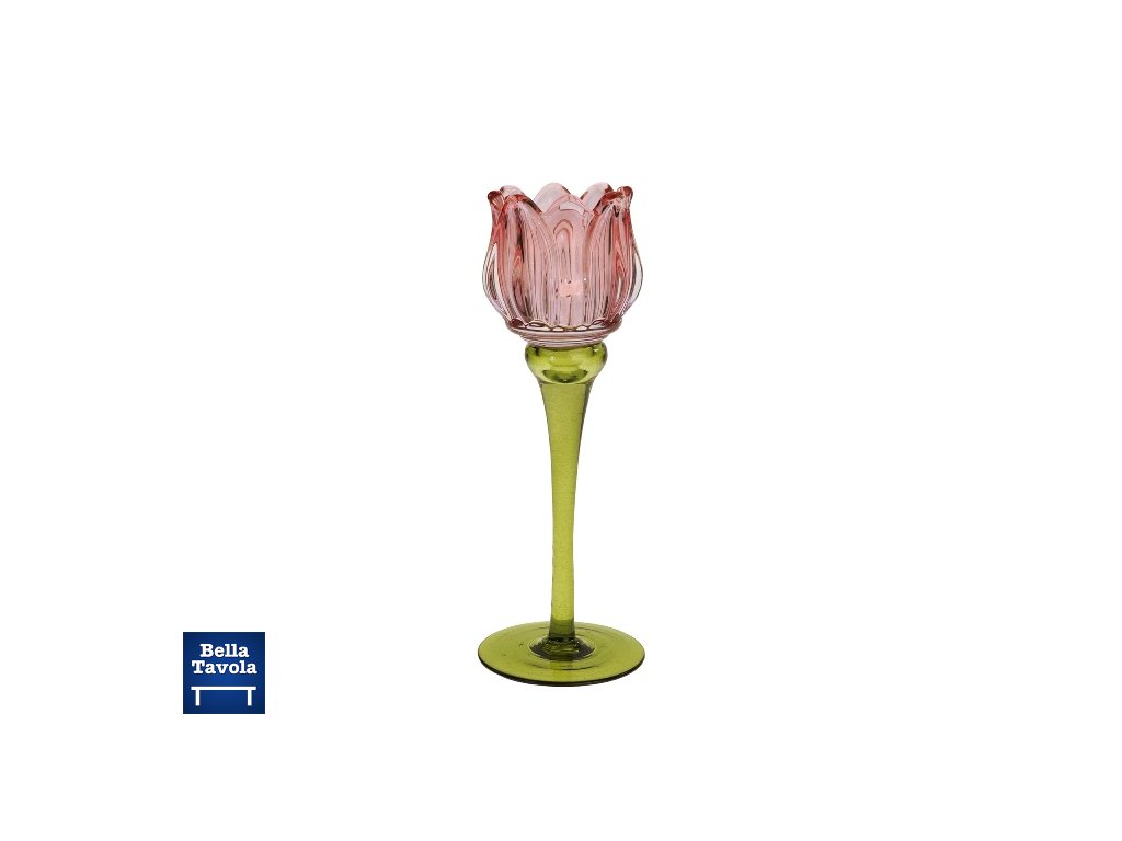 Sklenený svietnik Tulipán 21,5 cm ružová