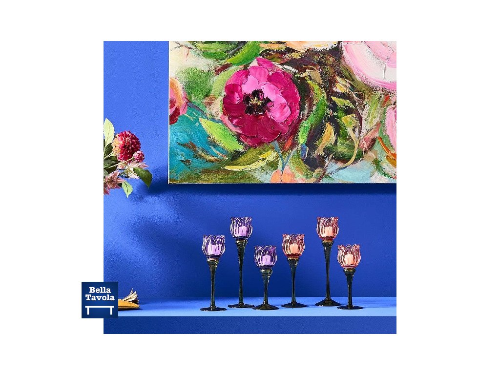 Sklenený svietnik Tulipán fialová. Nádherná jarná dekorácia na stôl.