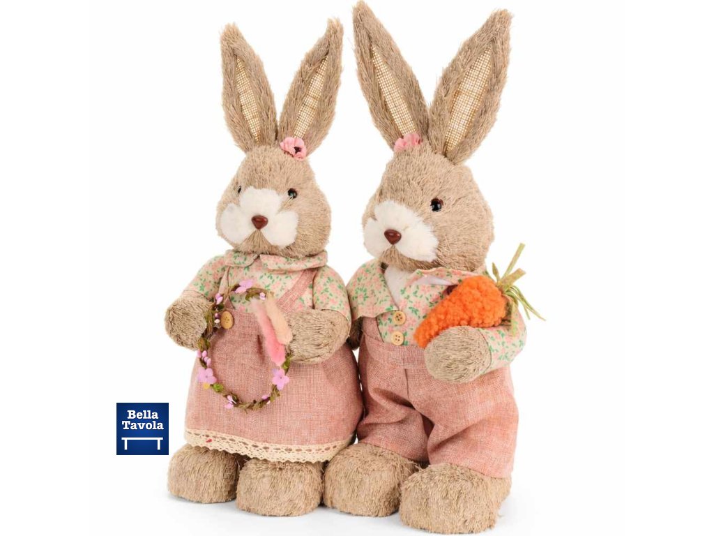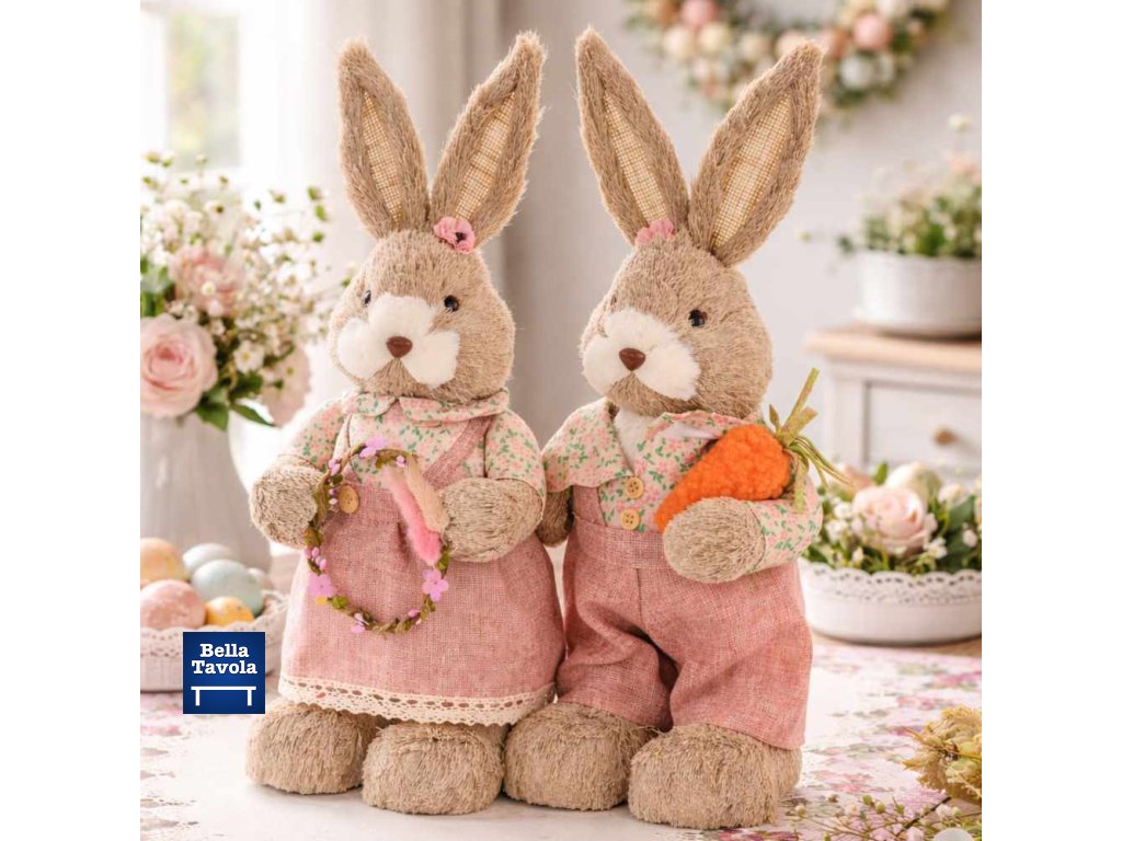 Slamený zajačik a zajačica 40 cm pár 2 ks - Nuvole di Stoffa
