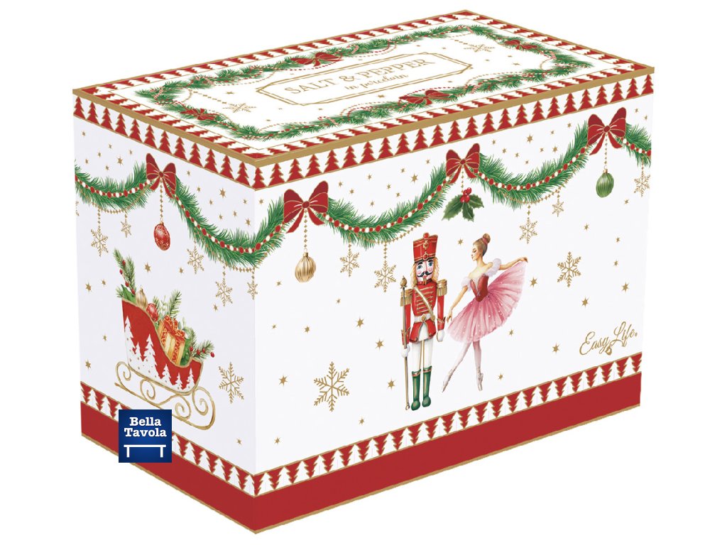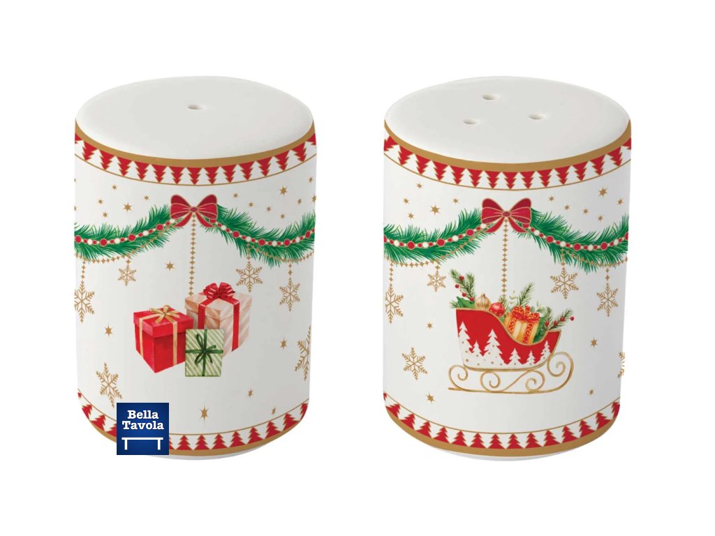 Porcelánová soľnička a korenička z vianočnej kolekcie Magie de Noel od značky Easy Life. V darčekovej krabičke.