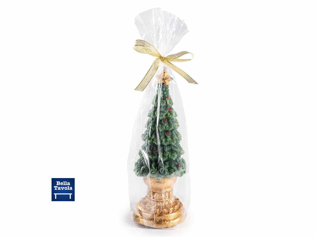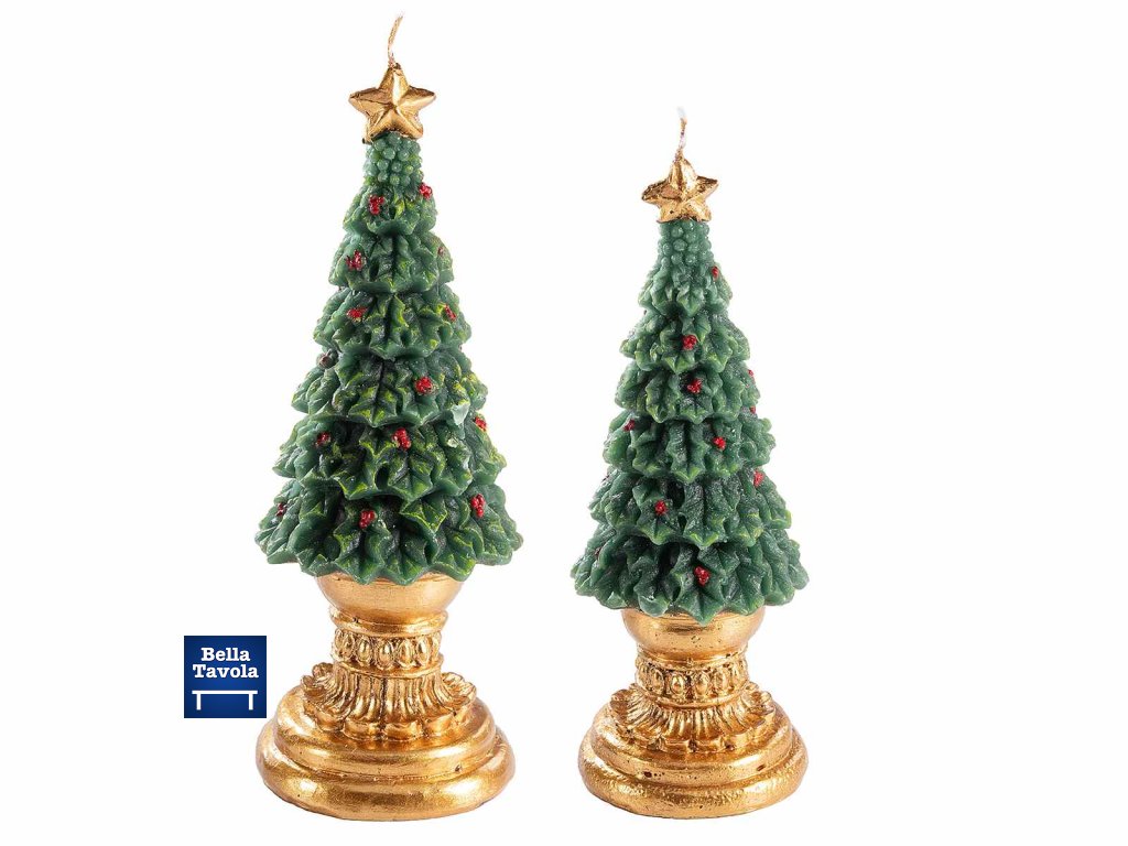Sada 2 ks sviečok Vianočný stromček s podstavcom a zlatou hviezdou 21cm/19cm