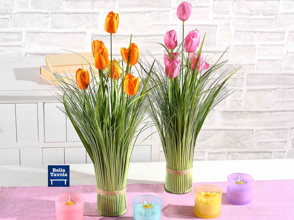 Umelé okrasné tulipány v tráve 51 cm ružová