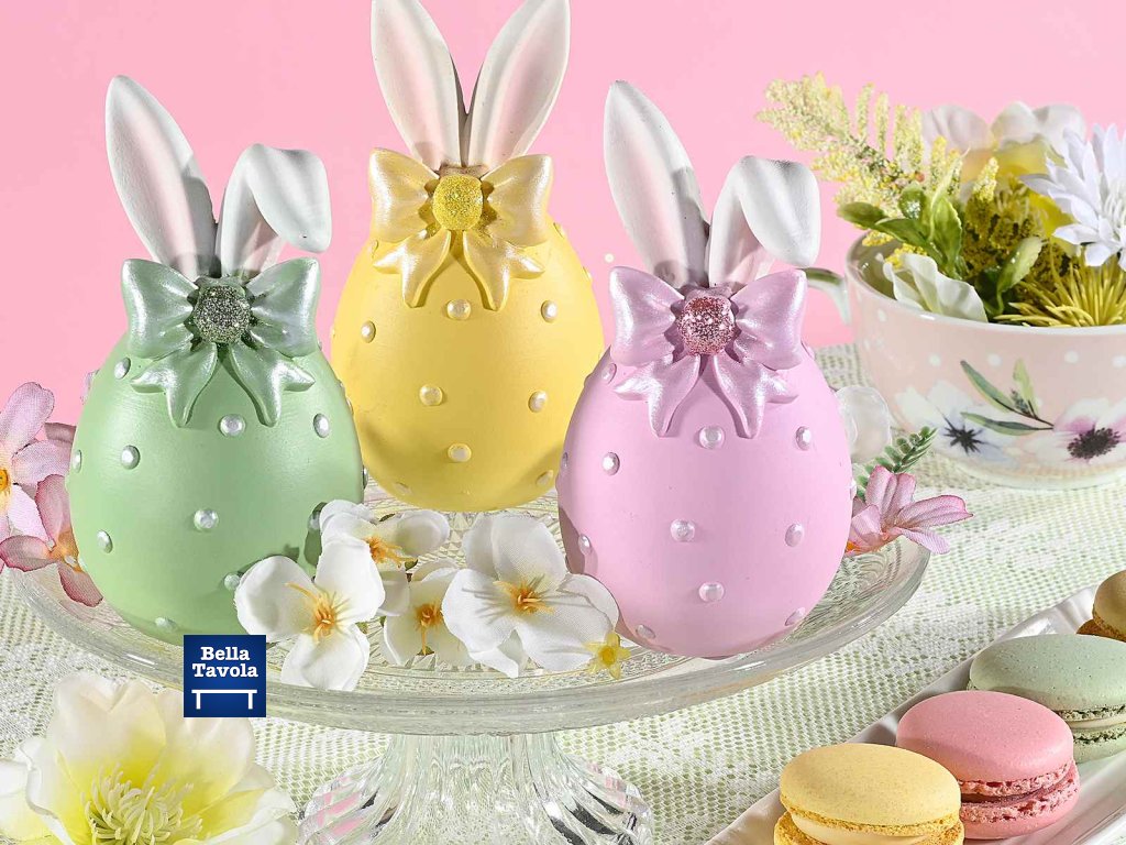 Nádherná veľkonočná dekorácia Vajíčka s králičimi uškami set 3 ks, ružová/žltá/zelená - AFI