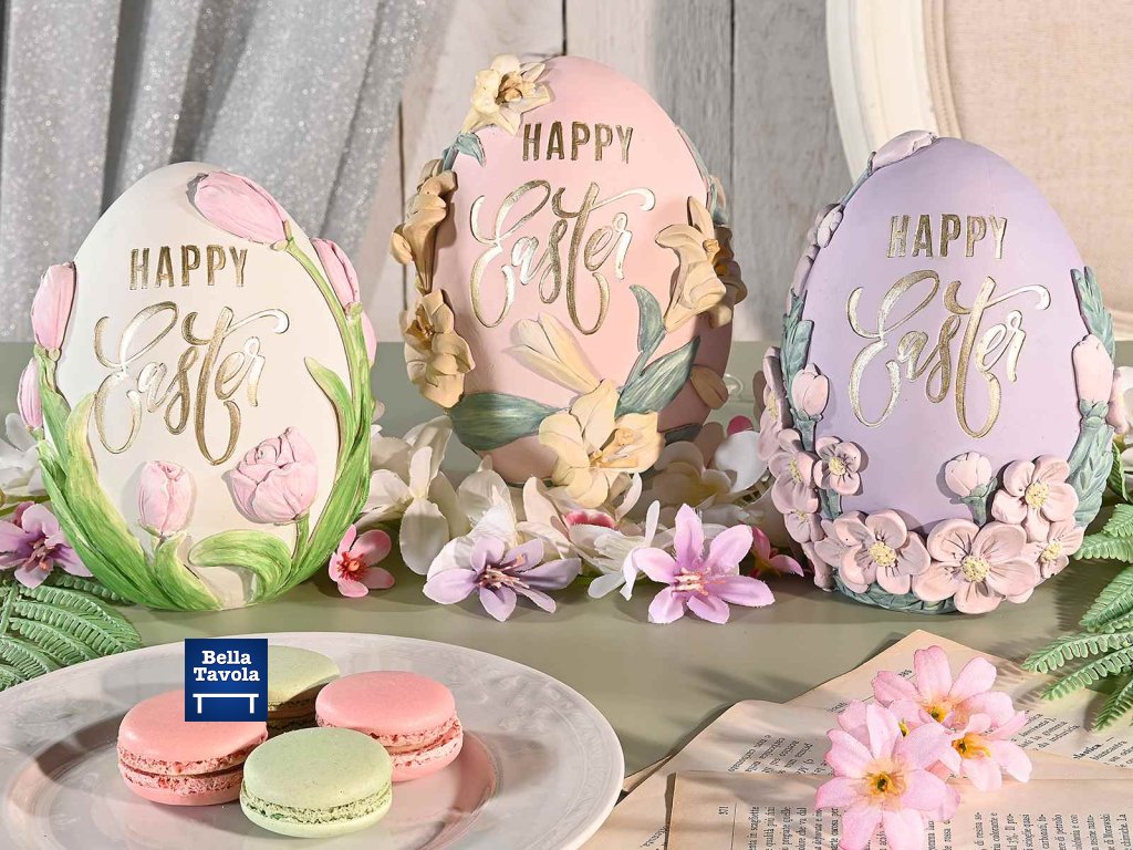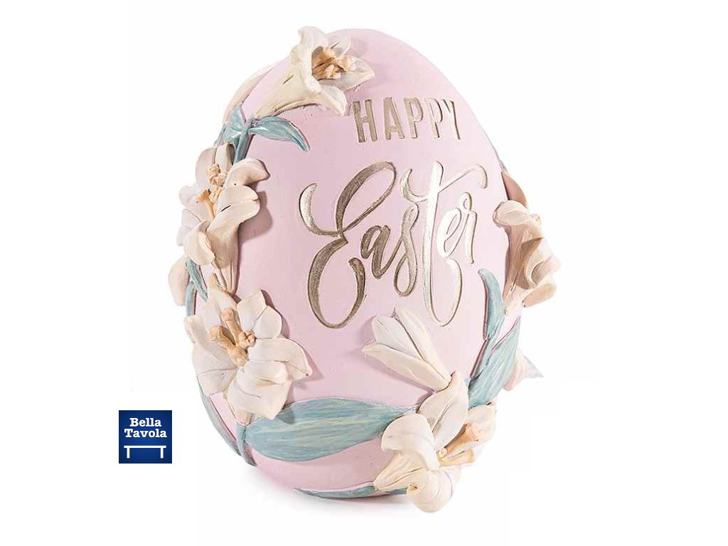 Veľkonočné vajíčko s reliéfnymi kvetmi a nápisom Happy Easter, ružová