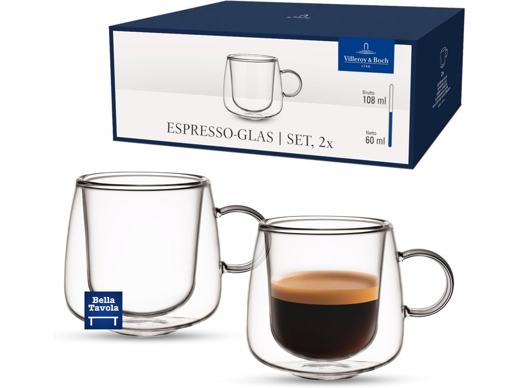 Dvojstenné poháre na espresso na štýlové vychutnanie teplých a studených nápojov, ako je espresso, ristretto, malé dezerty a ďalšie