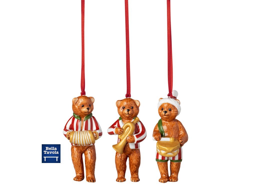 Vianočné porcelánové ozdoby Mackovia (Teddy Bears) z kolekcie Nostalgic Ornaments od Villeroy & Boch. Novinka 2026