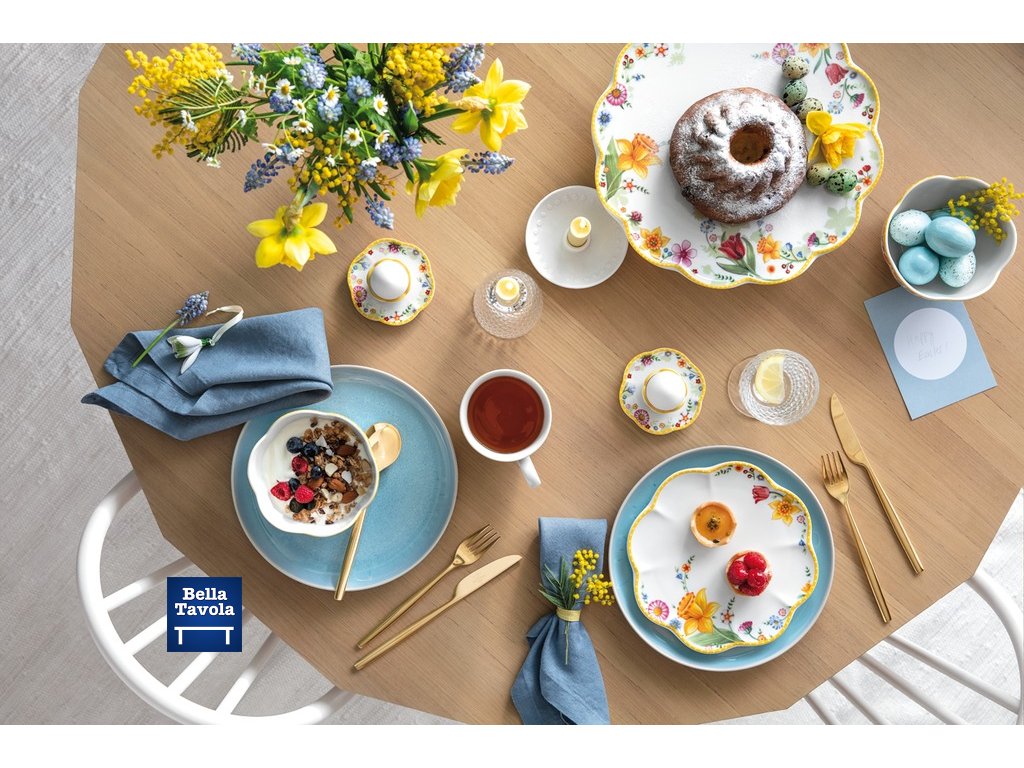 Raňajkový set 18 ks pre 6 osôb Spring Awakening od značky Villeroy & Boch vnesie na váš stôl sviežu jarnú atmosféru plnú farieb a elegancie. Kolekcia Spring Awakening je zdobená jemnými kvetinovými motívmi a veľkonočnými detailmi, ktoré premenia každé raňajky na výnimočný zážitok.