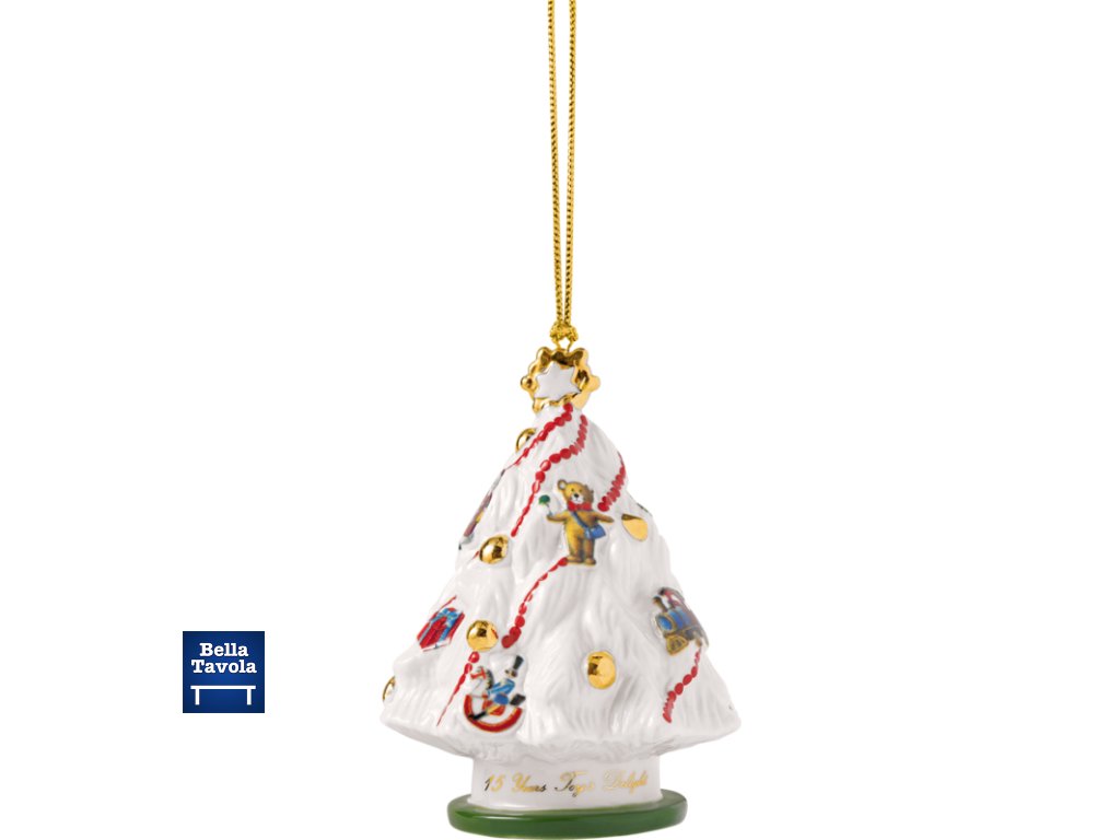 Vianočná porcelánová ozdoba Stromček s rokom vydania 2025. Zdobená výročným zlatým nápisom "15 years Toy's Delight." Nádherná dekorácia alebo darček pre zberateľov. Novinka 2025 od Villeroy & Boch.