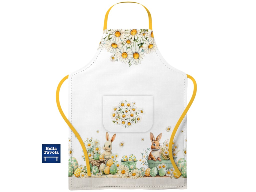 Veľkonočná zástera s motívom Zajačik a vajíčka, 100 % digitálne potlačená bavlnená látka, krásny a exkluzívny produkt. Vysoko kvalitná, veľmi odolná bavlnená látka. S praktickým, veľkým vreckom.